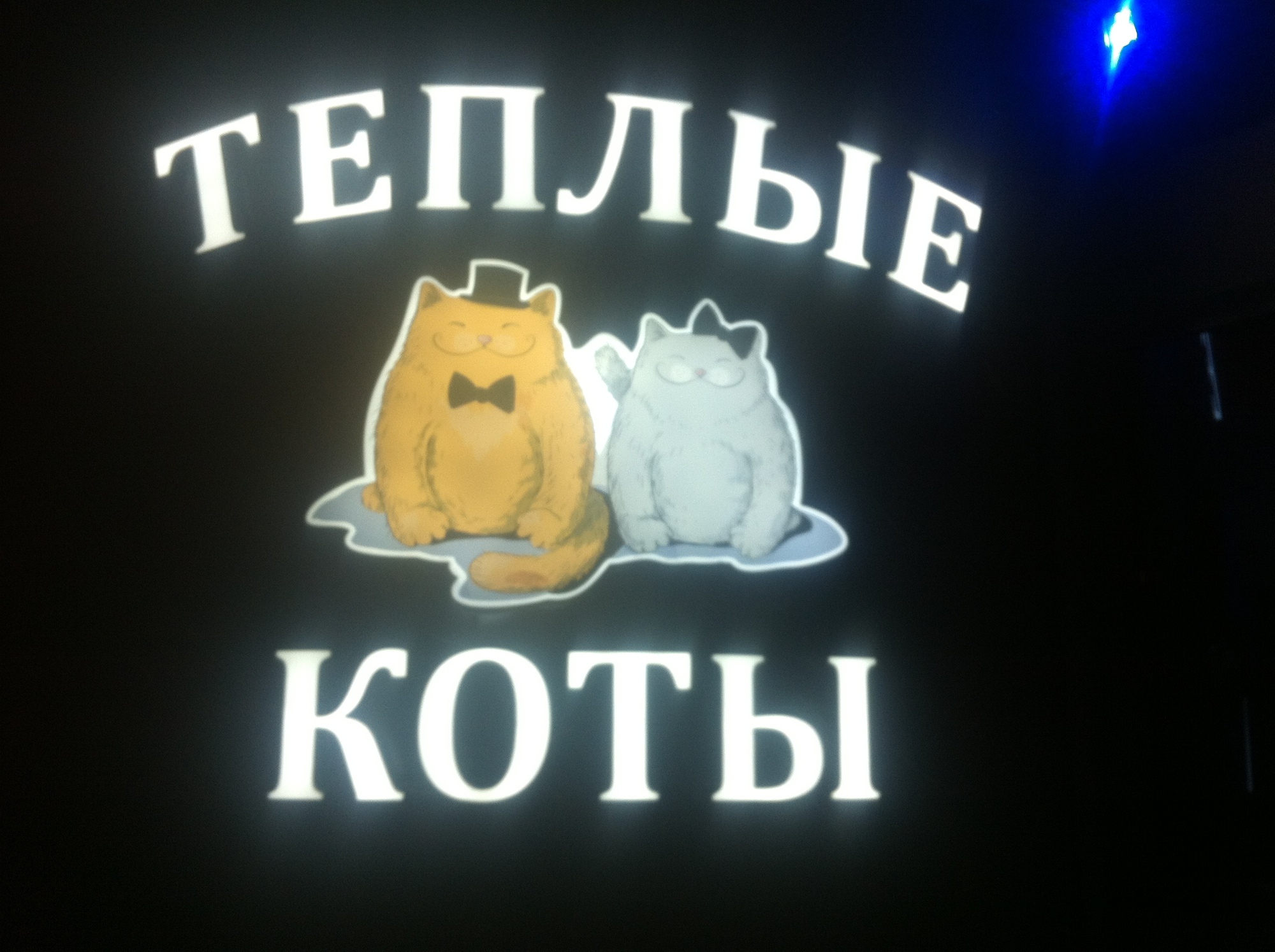 Слово ТЕПЛЫЕ КОТЫ объемные световые буквы высотой 400 мм. толщина 80 мм.