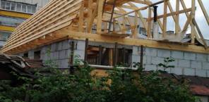 1-фундамент, коробка дома без утепления и под кровлю с временным покрытием руберойд.