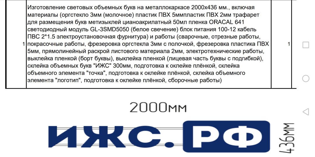 ИЖС.РФ Высота 50 см, святящиеся буквы, цвет синий, точка белая