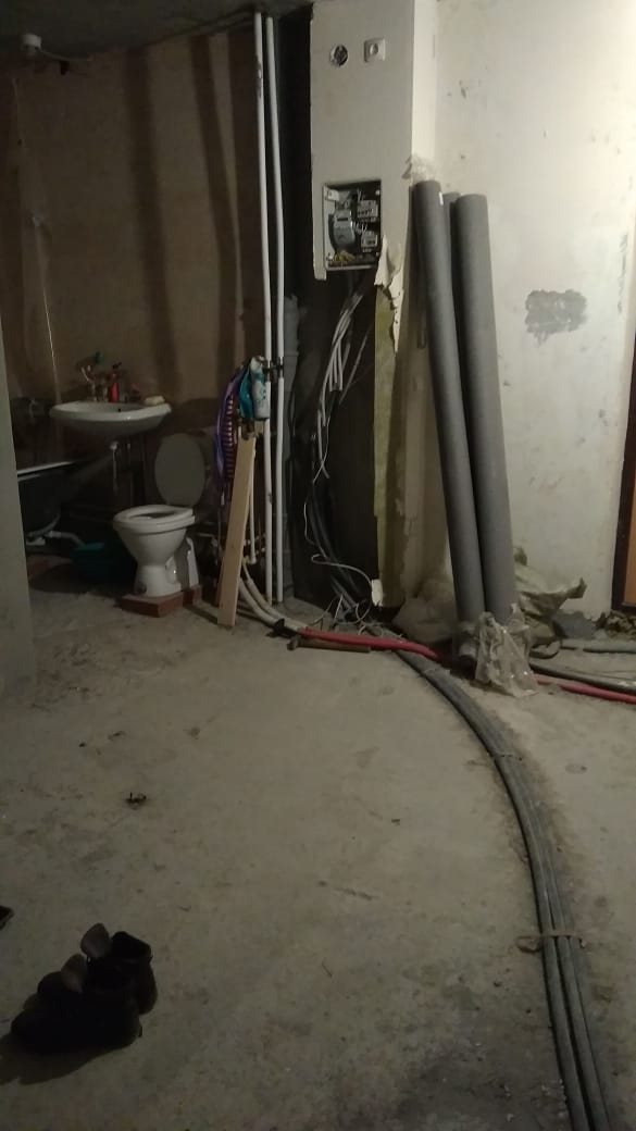 Штукатурка, шпатлёвка, обои, электрика, сантехника. В комнатах установлено по 8-10 розеток. На кухне столько же. По два выключателя. Прихожая, сан/узел, кухня, балкон плитка. Комната ламинат. Санузел раздельный. Общая площадь 54 м2. Комната 11 м2.