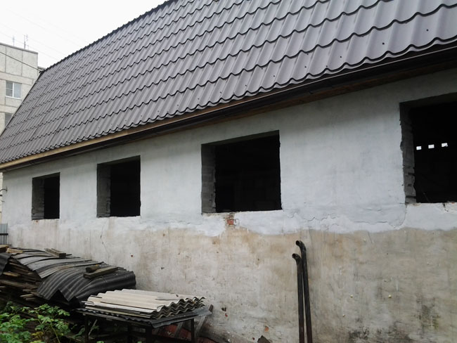 Демонтировать мансарду, крытую металлочерепицей и пеноблоки между оконными проемами